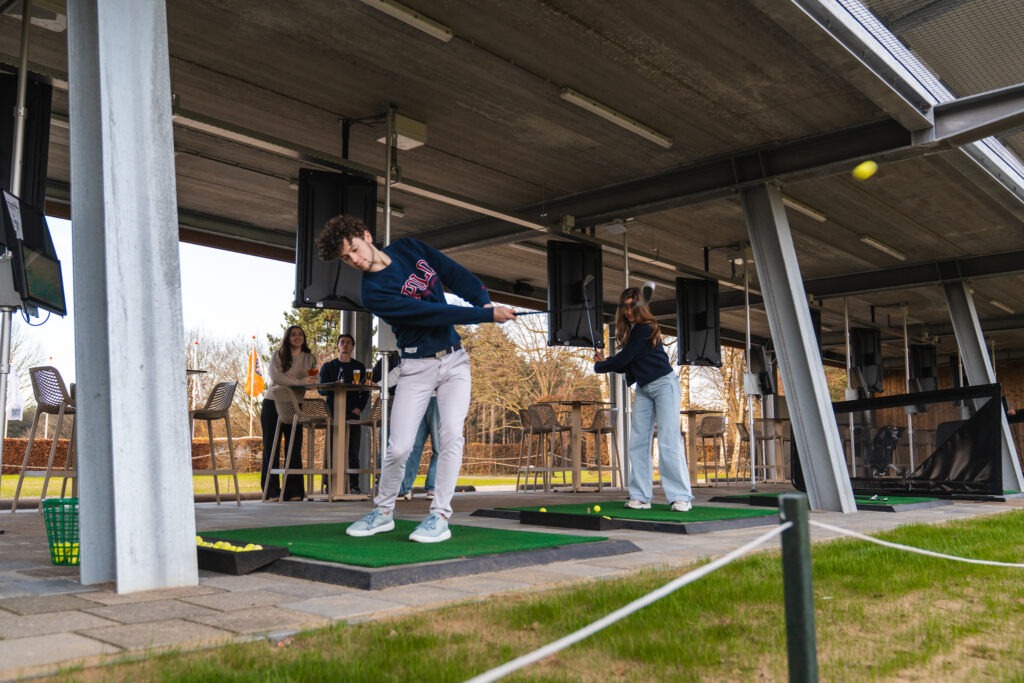 De leukste driving range van Nederland. Of je nu je eerste golfmeters maakt, met vrienden komt chillen of je golfspel wilt verbeteren, iedereen is welkom. Stap binnen, kies een bay (jouw eigen afslagplek), speel en geniet. Bij ons draait alles om proberen, plezier maken en trainen.